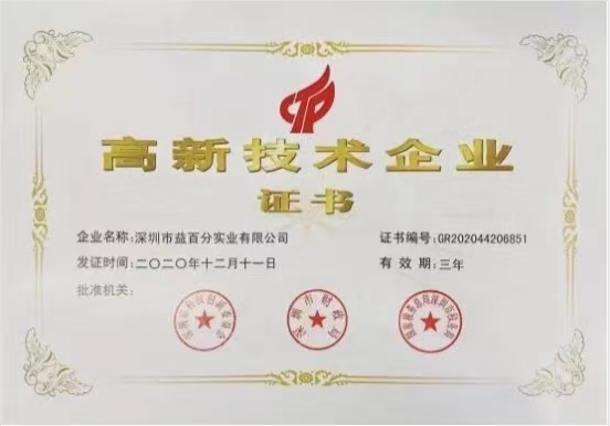2020年益百分榮獲“國家高新技術企業(yè)”認證